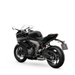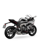 Standardní černá barva Sapphire Black, nová pro rok 2026, tvoří výrazný, přesto elegantní design napříč modely 660. Černá kapotáž, kola a palivová nádrž kontrastují se stříbrným výfukem pod motorem a logy Daytona 660, výrazná 660 grafika na spodní části kapotáže spojuje všechno dohromady v čistém a krásném stroji.