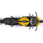 Druhou prémiovou volbou je žlutá Cosmic Yellow a černá Sapphire Black, dodávající ještě větší důraz a přitažlivost už tak úchvatnému motocyklu. Žluté Cosmic Yellow kapoty s grafikami Daytona a 660 kontrastují s ráfky, detaily a blatníky v černé Sapphire Black, a jsou doplněné poutavými červenými detaily Diablo Red.